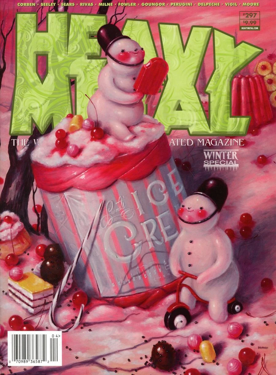 This Winter Special issue of Heavy Metal Magazine gathers a mix of dark and festive tales with artwork from multiple artists. It includes a variety of stories set against a chilly backdrop, complemented by three distinct covers and a selection of seasonal art and greetings.