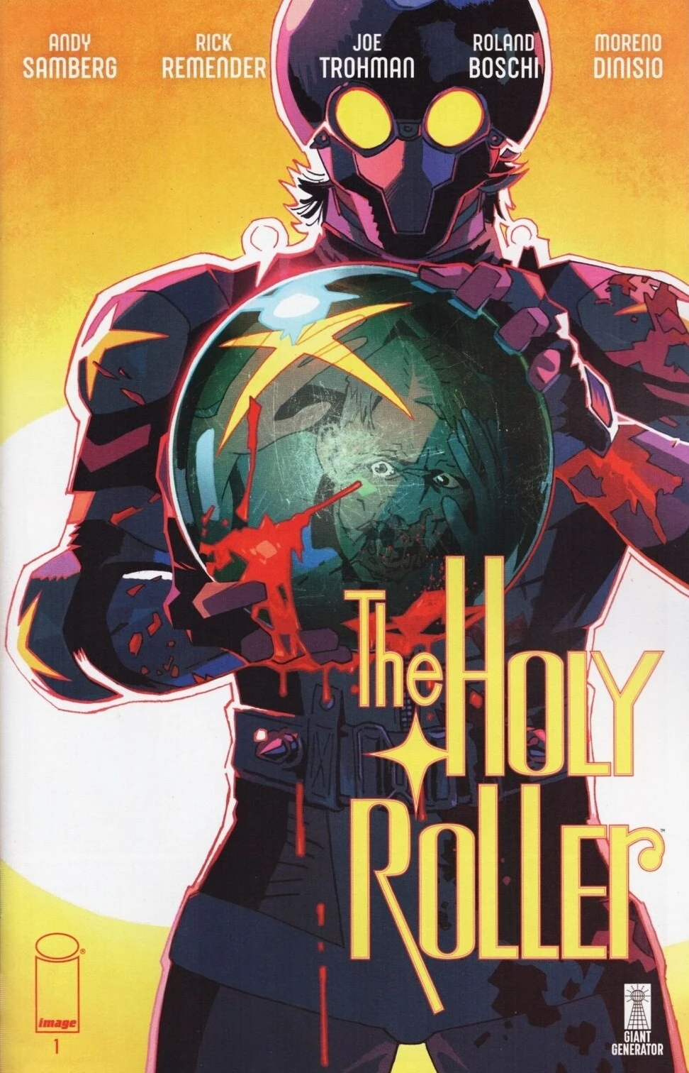 Pro bowler Levi Coen returns home to care for his sick father and finds his town overtaken by Neo-Nazis. Armed only with his bowling balls, Levi adopts the mantle of The Holy Roller to fight back. This debut issue blends action and humor as Levi begins his quest to protect his community with a unique style of vigilante justice.