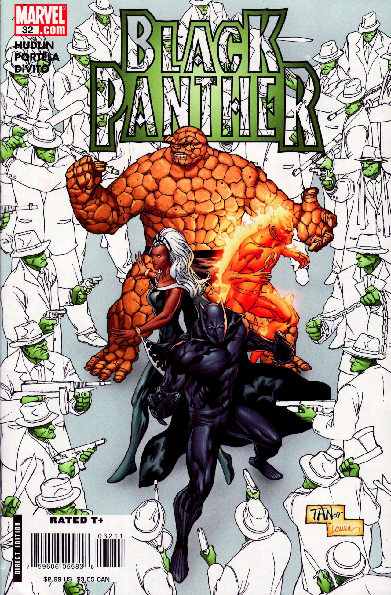 Black Panther, Human Torch, and Thing find themselves trapped amid a conflict between Skrulls who mimic 1930s American gangsters. Storm separates from the group to seek aid while tensions rise in this unexpected battleground.