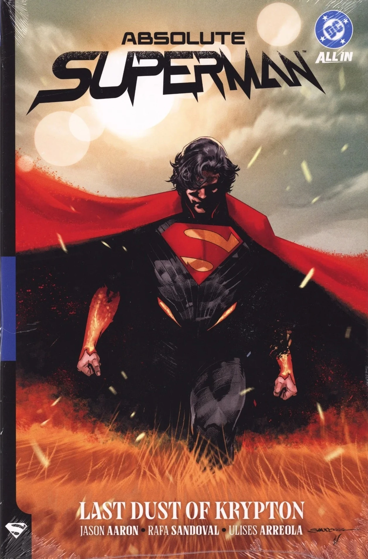 Collects Absolute Superman #1-6. In DC's Absolute Universe, Kal-El crash-lands not in Kansas but in a world shaped by Darkseid's influence. Raised as an immigrant farmworker without the Kents, this Superman must earn his heroism the hard way. Written by Jason Aaron with art by Rafa Sandoval.