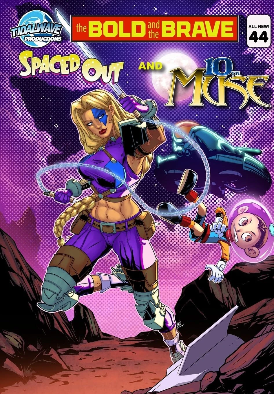 The Bold and the Brave #44 presents the 10th Muse teaming up with Bops in the story 'Spaced Out and 10th Muse.' The issue focuses on their partnership and the challenges they face together.
