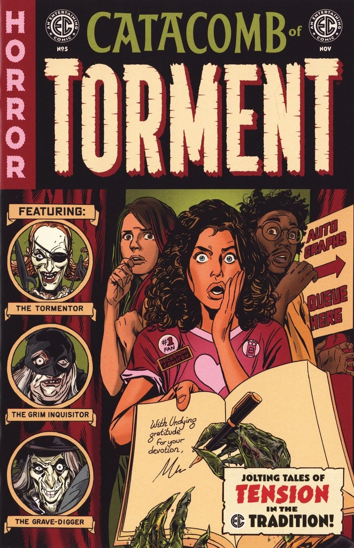 EC Catacomb of Torment #5 collects three stories titled Necronomicomicon, A Ray of Sunshine, and Tooth and Claw. Contributors include Christopher Cantwell, Cris Peter, Dan McDaid, Evan Dorkin, Francesco Segala, Jay Stephens, Kevin Ketner, and Mark Buckingham.