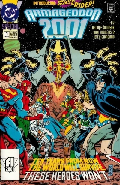 Armageddon 2001 is a 1991 DC Comics limited series. It centers on Waverider, a hero from a dystopian future, who travels back in time to identify and stop a powerful tyrant known as Monarch. The series explored numerous alternate futures for DC heroes through its extensive tie-in annuals.
